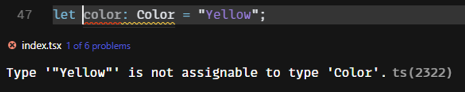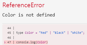 Color 타입에 존재하지 않은 값을 할당하는 경우 다음과 같은 오류를 확인할 수 있습니다.