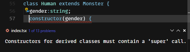 위 예제는 다음 사진처럼 자식 클래스의 생성자(constructor)에서 컴파일 오류가 발생합니다.