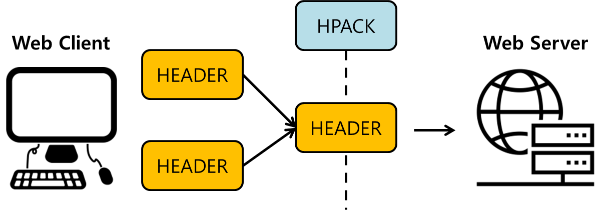 서버로 전송되기 전에 각 헤더의 값을 압축한 다음 전체 헤더 정보를 재구성하기 위해 이전에 전송된 헤더 값 목록에서 인코딩 정보를 찾습니다.