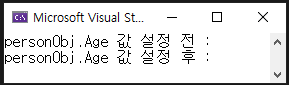 Console.WriteLine("personObj.Age 값 설정 전 : " + personObj.Age);