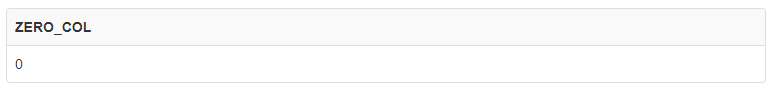 SELECT CEIL(0) AS ZERO_COL
