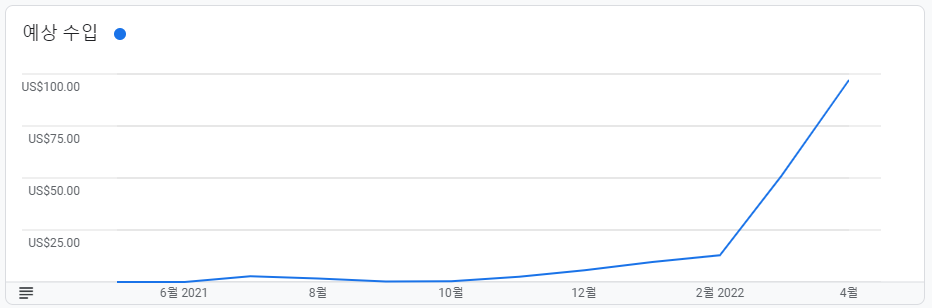 그래프 보시면 아시겠지만 2021년 6월 ~ 2022년 1월까지 수익이 거의 없습니다. 2021년 4월부터 블로그 시작했으니 10개월 동안 무급으로 블로그 운영한 것이죠. 10개월 노력에 대한 보상을 받는 기분입니다.