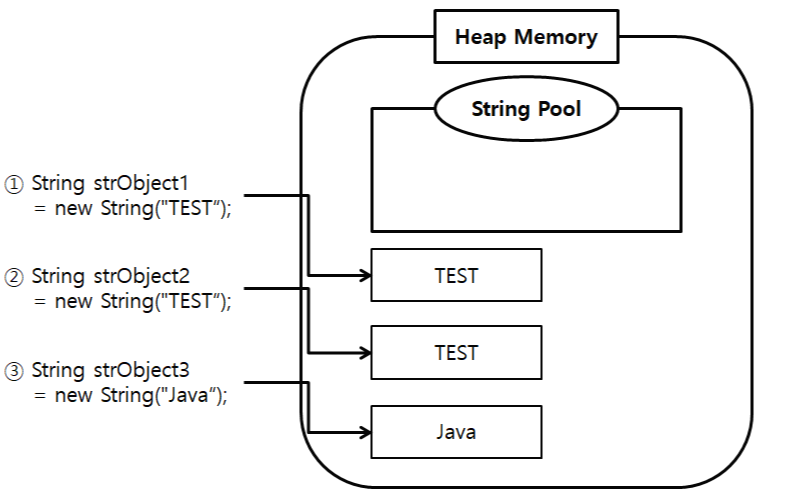 strObject2는 String Pool 외부의 공간을 참조합니다.