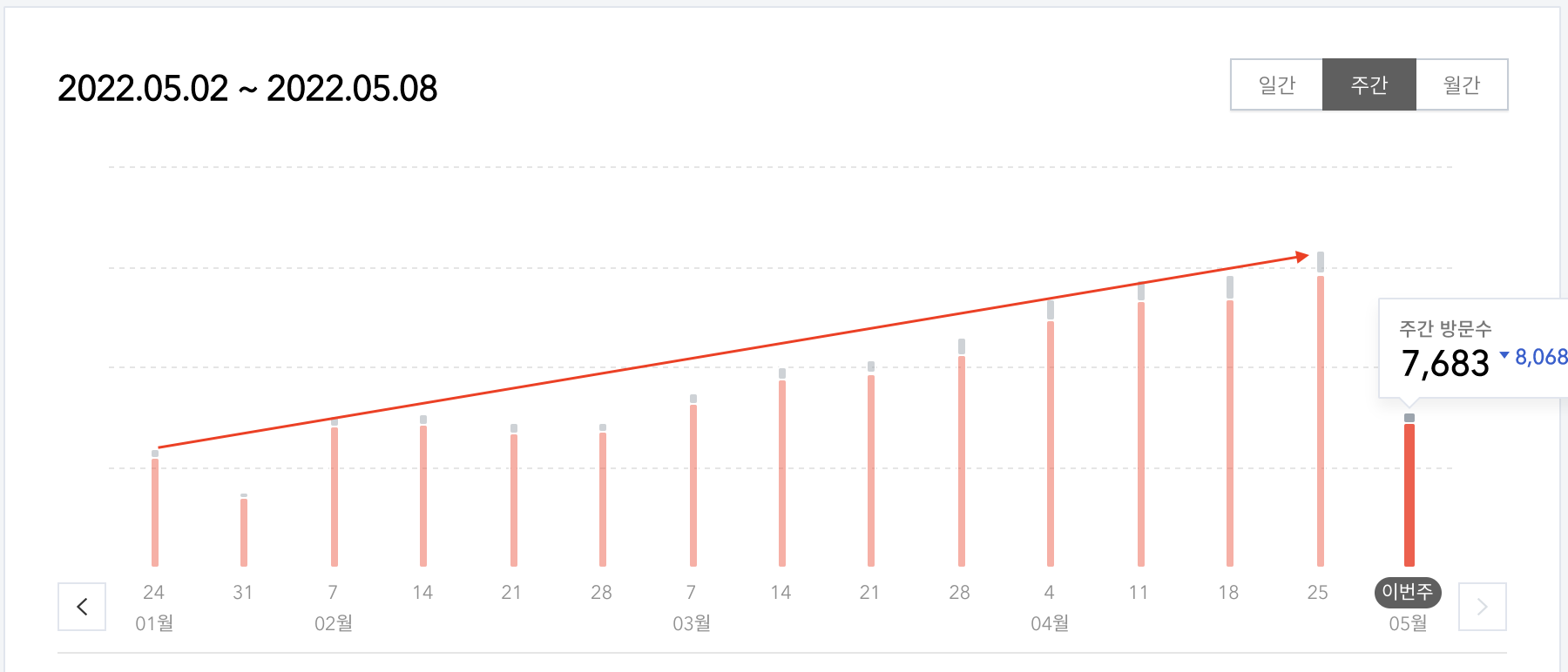 2,000명 달성 일자가 2022년 3월 29일이므로 대략 한 달 하고 1주일 후에 3,000명 달성하였다. 이번 포스팅에서 2,000명에서 3,000명 달성까지 어떠한 변화가 있었는지 앞으로 계획은 무엇인지 정리하려고 한다.