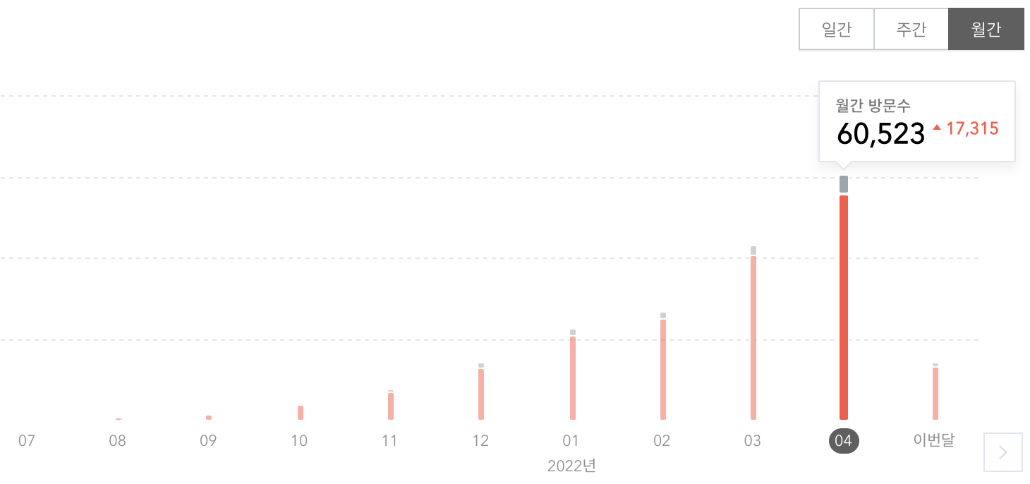 포기만 안 한다면, 방문 유입과 수익은 꾸준히 상승할 것이며 나를 브랜딩 할 수 있습니다. 제 목표는 블로그를 통해 나를 브랜딩 하는 것이고 궁극적인 목표는 개발 서적을 집필하는 것입니다.