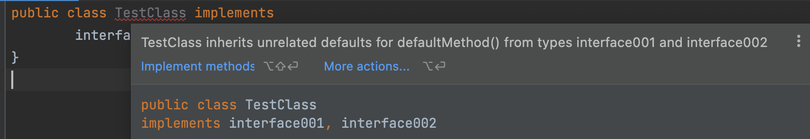 위 문제를 해결하려면, 클래스에서 충돌이 발생한 메서드를 구현합니다.