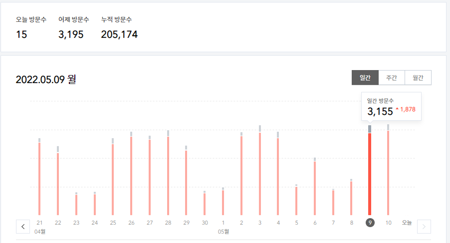 | [티스토리]일일 방문수 3,000명 달성 (0) | 2022.05.04 |