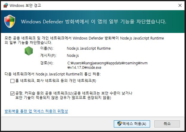 액세스 허용 클릭