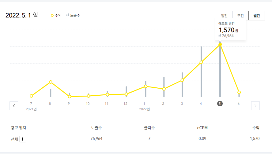 2022년 5월 티스토리 결산을 통해 어떠한 변화가 있었는지 알아보겠습니다.