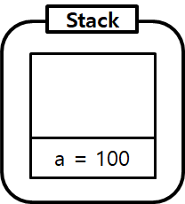 int a = 100; 코드가 실행이 되면서 변수 a가 스택 영역에 쌓이게 됩니다.