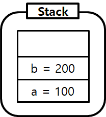 int b = 200; 코드가 실행이 되면서 변수 b가 a위에 쌓이게 됩니다.