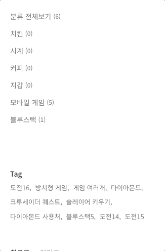 일단... 안 이쁘다... 디자인이 별로다... 서브 카테고리가 최상위 카테고리인 "분류 전체보기"보다 폰트 사이즈가 크다보니 뭔가 이질감이 생긴다.