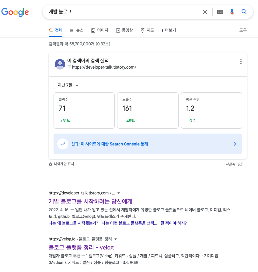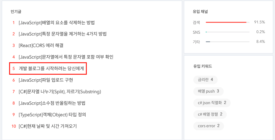 "개발 블로그를 시작하려는 당신에게"라는 제목의 포스팅은 생각보다 인기가 많았고 구글 노출도 최상위인데, 뿌듯함보다는 많은 내용을 전달하지 못해 아쉬웠다.