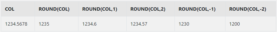 , ROUND(COL) -- 1번째 위치에서 반올림 ROUND(COL, 0)와 동일함