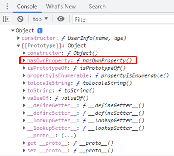 UserInfo.prototype 객체의 [[Prototype]] 프로퍼티를 살펴보면, hasOwnPrototype() 함수가 존재합니다.