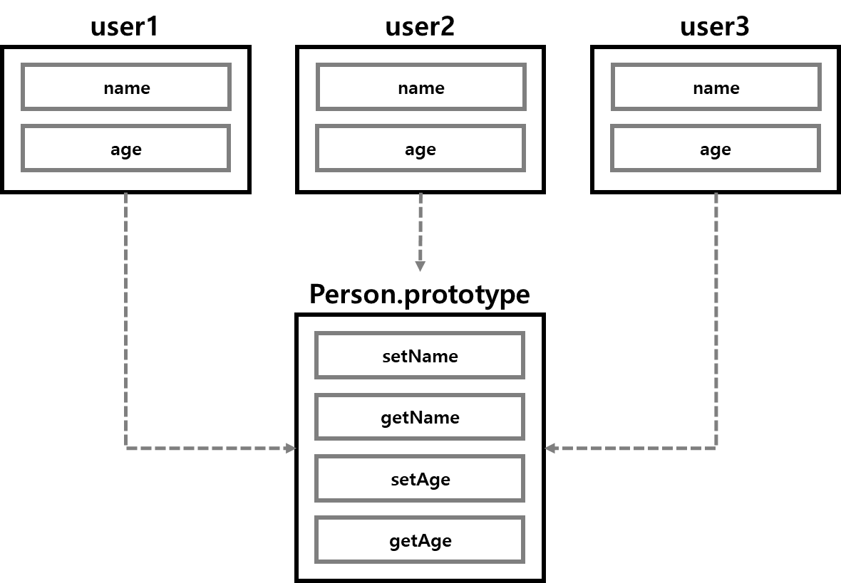 UserInfo 함수 객체의 prototype 프로퍼티에 함수를 정의함으로써 객체에는 함수가 생성되지 않고 프로토타입 체인으로 함수를 접근할 수 있습니다.