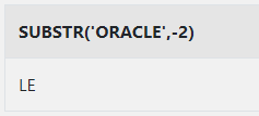 문자열 'ORACLE'의 뒤에서 두 번째 위치인 'L'에서 마지막 문자열까지 반환됩니다.