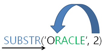 문자열 'ORACLE'의 두 번째 위치인 'R'에서 마지막 문자열까지 반환됩니다.