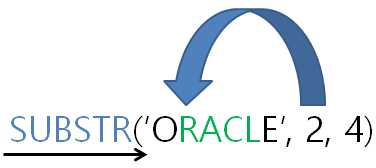 문자열 'ORACLE'의 두 번째 위치인 'R'에서 4개의 문자열이 반환됩니다.