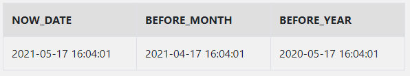 - 오늘 일자(2021-05-17)에서 -1개월을 더하면 2020-06-17이 반환됩니다.