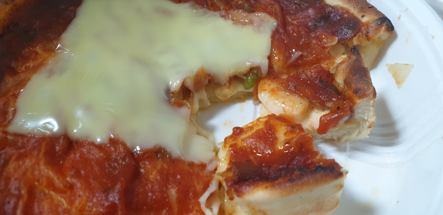 시카고 리얼 쉬림프피자 표지를 보면 멕시칸 살사 소스가 보이는데 맵찔이인 내가 감당할 수 있을지 모르겠다.