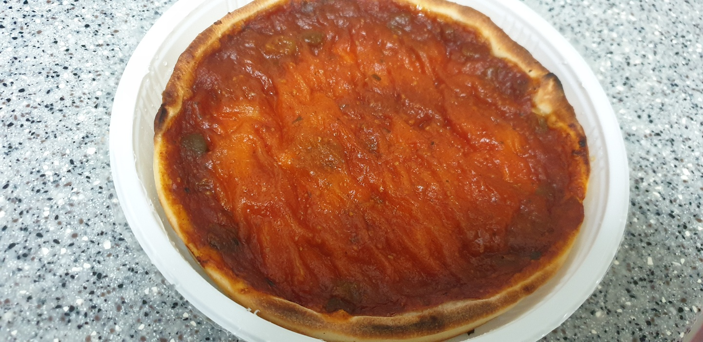 불고기피자 후기에서 말했지만 전자레인지로 조리하면 소스의 수분이 날아가서 토마토소스가 굳어버린다. 사진에서 볼 수 있듯이 전자레인지로 조리하면 겉에 있는 소스의 색깔과 가운데 있는 소스의 색깔이 다른 것을 확인할 수 있다.