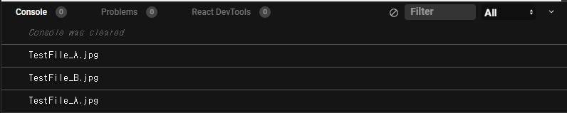 위 시나리오처럼 동일한 파일을 연속해서 선택한 경우 "TestFile_A.jpg"가 콘솔에 두 번 출력될 거라 예상했지만, 단 한 번만 출력되었습니다.