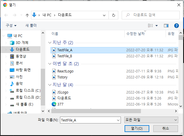 - 파일 탐색기 창에서 TestFile_A.jpg 파일 선택 후 열기 버튼 클릭