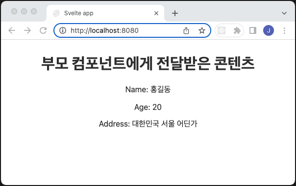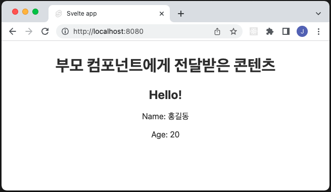 부모 컴포넌트에게 전달받은 콘텐츠를 <slot />으로 표시할 수 있으며, <slot />를 기본 슬롯이라고 부릅니다. Svelte의 슬롯(slot)은 React의 합성(Composition)과 유사합니다.