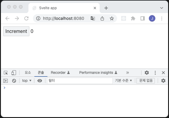 우선, svelte/store 패키지에 정의되어 있는 writable() 함수를 import하고 초깃값을 0으로 설정합니다.