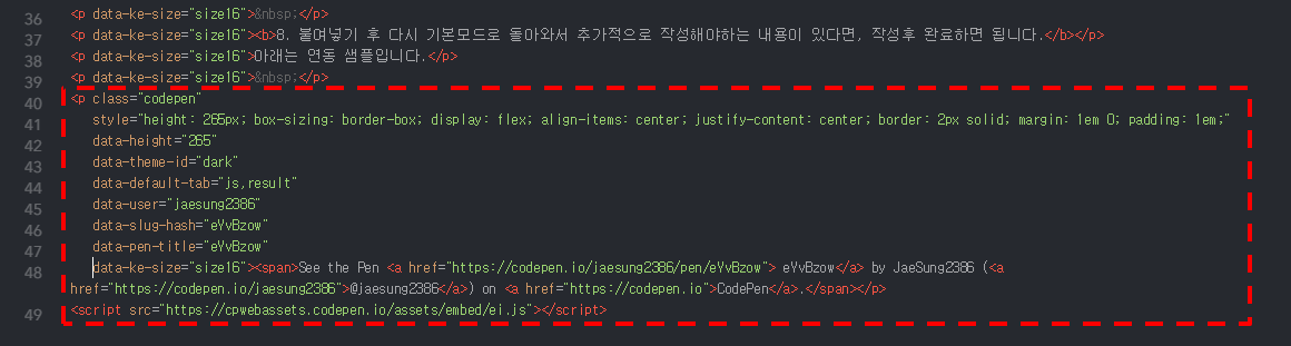 티스토리와 코드펜의 연동은 작업한 내용의 이름으로 분류하기 때문에 작업 내용은 이름으로 관리를 하셔야합니다.