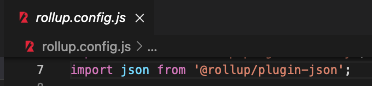 다음으로 rollup.config.js 파일을 확인합니다. @rollup/plugin-json을 import 하는 코드가 없다면, 다음 사진처럼 @rollup/plugin-json 라이브러리를 import 합니다.