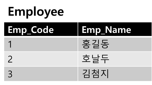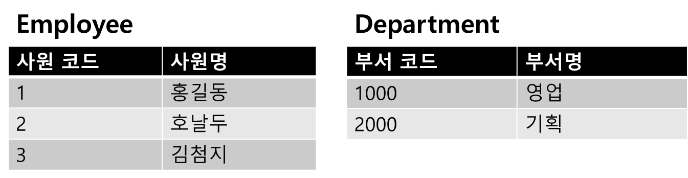 예를 들어, 두 개의 데이터 집합(Employee, Department)이 존재합니다.