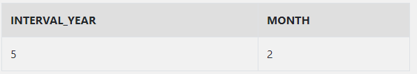 SELECT EXTRACT( YEAR FROM INTERVAL '5-2' YEAR TO MONTH ) AS INTERVAL_YEAR