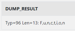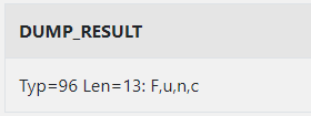 SELECT DUMP('DUMP Function', 17, 6, 4) AS DUMP_RESULT