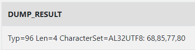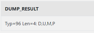 SELECT DUMP('DUMP', 17) AS DUMP_RESULT