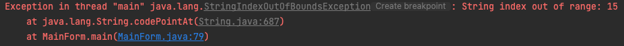 만약, codePointAt() 메서드에 문자열 인덱스 범위를 벗어나는 값을 전달하면 StringIndexOutOfBoundsException이 발생합니다.