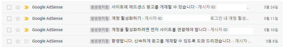 5월 8일 : 애드센스 신청 메일