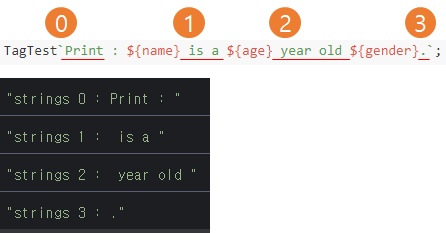 const result = TagTest`Print : ${name} is a ${age} year old ${gender}.`;