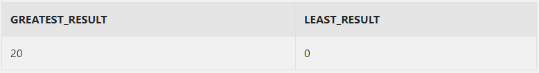 SELECT GREATEST(5, 20, 10, 5, 0) AS GREATEST_RESULT
