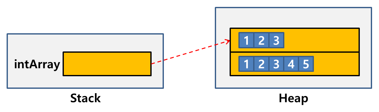 하지만, ref 키워드를 사용하는 경우 setIntValue() 메서드는 Main문에 존재하는 intValue의 값을 변경합니다.