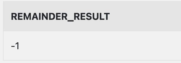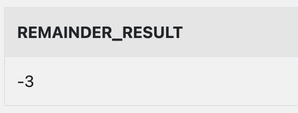 SELECT REMAINDER(-29, -10) AS REMAINDER_RESULT