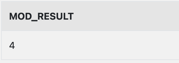 SELECT REMAINDER(25, 4) AS REMAINDER_RESULT