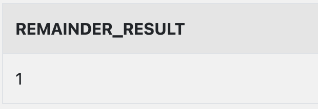 SELECT REMAINDER(25, 5) AS REMAINDER_RESULT