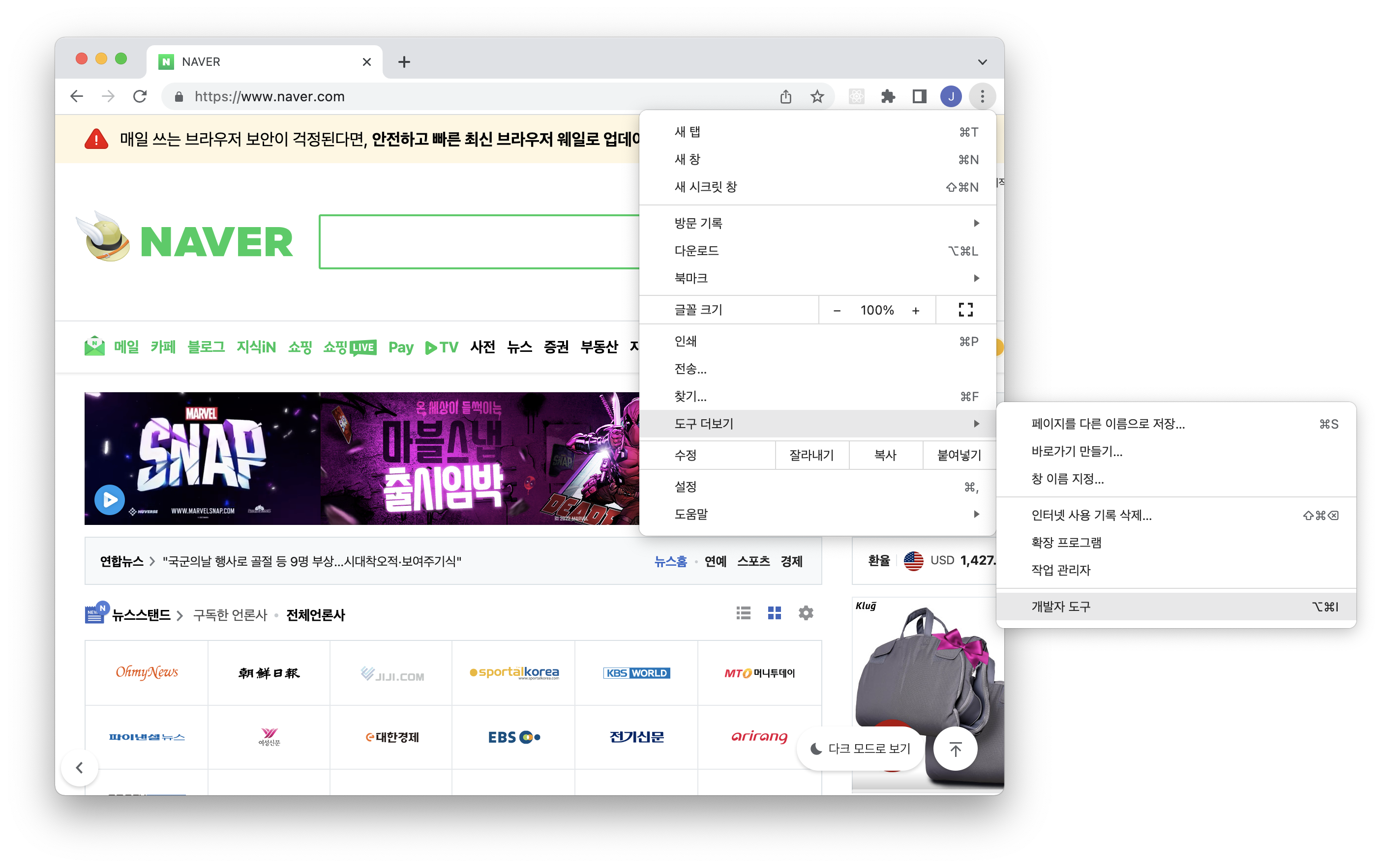이번 포스팅은 F12 단축키를 사용하지 않고 크롬 개발자 도구를 실행할 수 있는 몇 가지 방법을 소개합니다. 참고로 제가 사용하고 있는 PC의 운영체제는 Mac이므로 사진과 다를 수 있습니다.