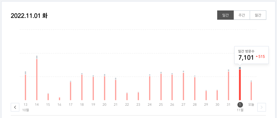 2022년 11월 1일 화요일 일일 방문수 7,101명을 달성하였습니다.