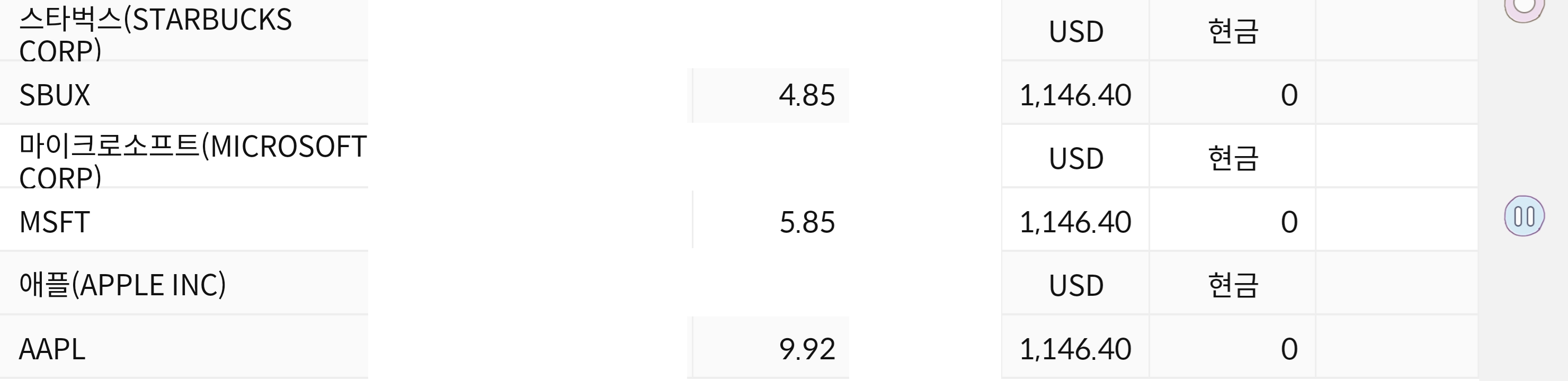2. 보유하고 있는 해외 종목들은 계속해서 수익률이 오르고 있다. 추가적으로 매수 후 평균 단가를 고려해도 수익률은 플러스(+)다. 만약, 주가가 평균 단가 아래로 내려가더라도 배당금으로 버티면 된다.