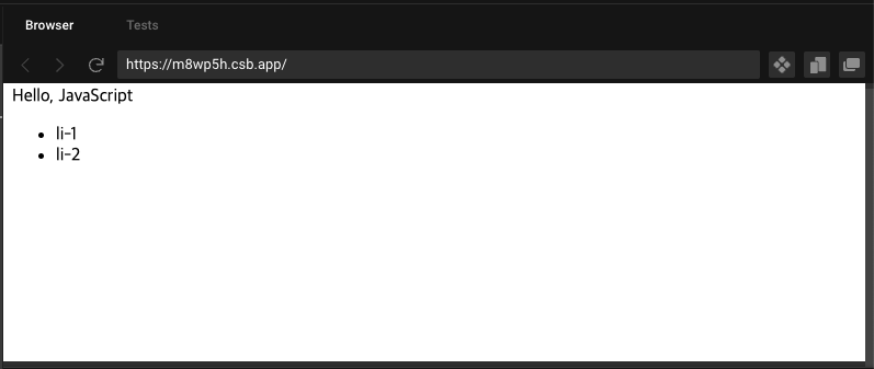 아래는 id가 "ul-list"인 HTML 요소 앞에 문자열을 추가하는 JavaScript 코드입니다.