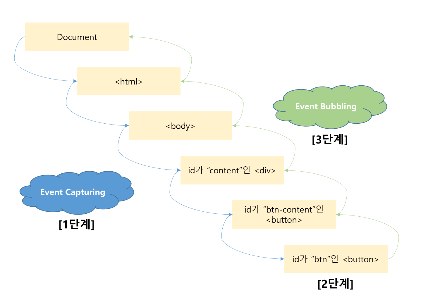 아래 그림은 사용자가 버튼을 클릭할 때 이벤트 버블링 과정입니다.