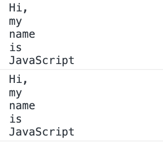 const str1 = "Hi,\nmy\nname\nis\nJavaScript";